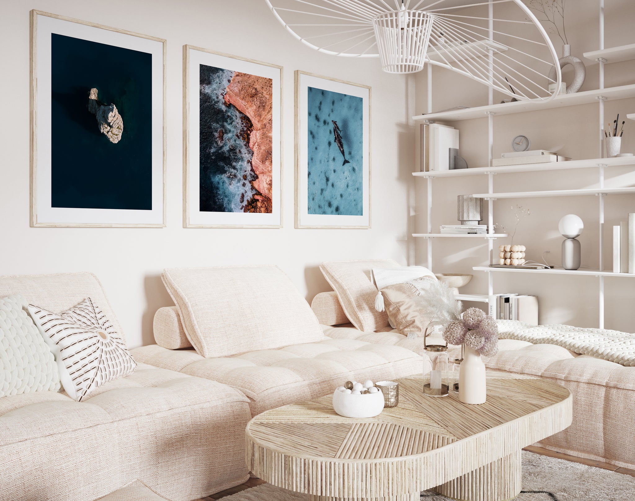 Blau bringt Ruhe, Konzentration und Klarheit ins Ambiente. Kein Wunder, dass Blau die weltweit beliebteste Farbe ist. Nicht zuletzt, weil uns ein tiefes Blau an die Weiten des Meeres erinnert. Entdecke atemberaubenden Drohnenflüge über die Ozeane dieser Welt. Aufbereitet in unterschiedlich großen Formaten und Kombinationen verleihen sie Räumen Eleganz, Anmut und Entspannung. Hier gehts zur Deep-Blue Kollektion.